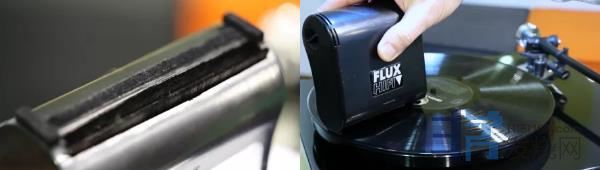 接下来,我们就重点说说产品,将Vinyl Turbo 握在手中的时候,个人觉得产品的手感很不错。先说开关,开关设置在产品机身正面,是一个圆形按钮,在机身的下面则分别是刷毛以及绒毛,可以有效的带走附属在黑胶碟上的尘埃、颗粒等,从而达到更好的清洁效果。机背后有一片金属片,金属片跟刷毛是有连结起来,所以通过手指去接触背后的金属片时,能够更好的带走静电,使得在功能操作过程中,能够更好的发挥功能作用,让黑胶唱碟还原最原始的声音。