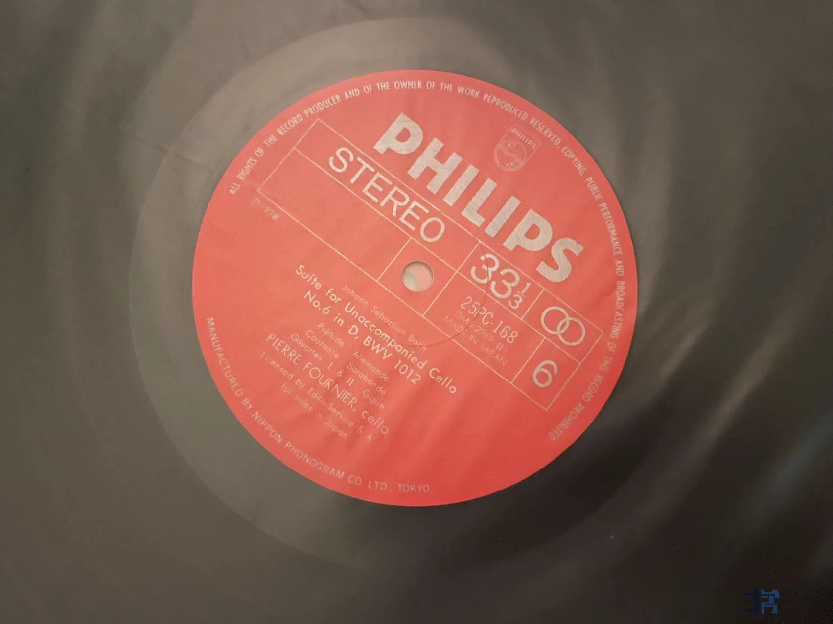 富尼埃(fournier)的巴赫无伴奏大提琴组曲,日版Philips发型首版,非常棒的唱片,富尼埃最后一次的大无录音,3LP,成色第5面有一条细长痕如图,实际播放影响非常小,完全没有划痕那种的持续声音,类似表面旧迹,非常轻微的偶发“沙”声,第3面一个压片瑕疵如图,造成10声“哒”声,其他完好,成色4面NM,2面EX。1200元(已出)