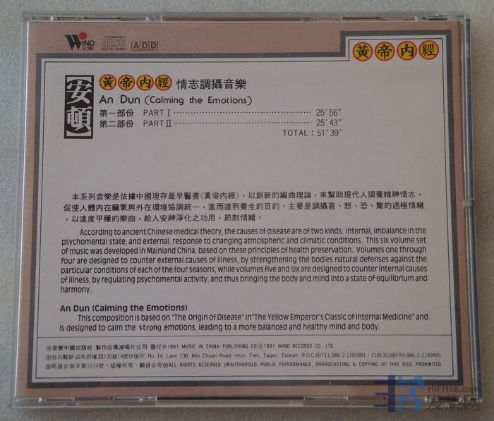 [size=5]情志调攝[/size][size=5]音乐[/size][size=5]:黄帝内经 安顿 台湾K1首版无IFPI码、95成新,150元[/size]