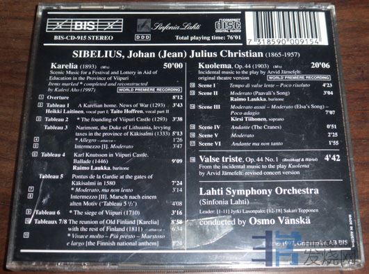 117.毕勤指挥演奏西贝柳斯,企鹅三星带花, 90年代德国压盘有码,碟片略有使用痕迹,播放OK,小册子背面有中文书写的曲目名称 80元