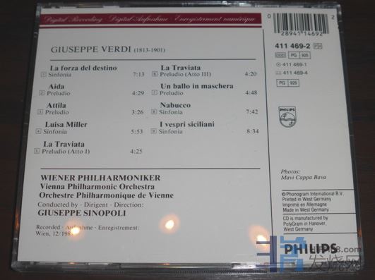 124.西诺波利指挥维也纳爱乐演奏威尔第序曲,西德PDO压盘,小册子最后一页原主人留下的时间字迹已基本搽去,其余基本OK 80元