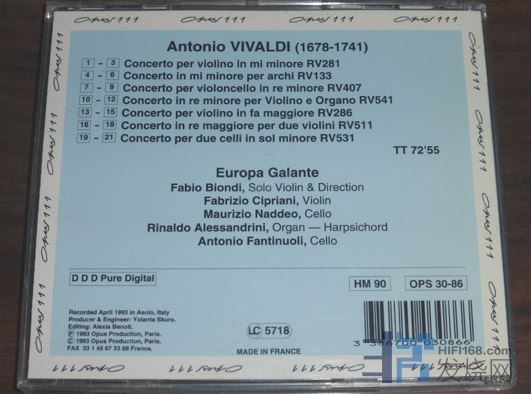 新5.比昂迪名版维瓦尔第7首协奏曲,93年欧版无码,碟片些许细痕,印刷面略有污迹,播放OK,小册子右上方一处卡齿印 60元