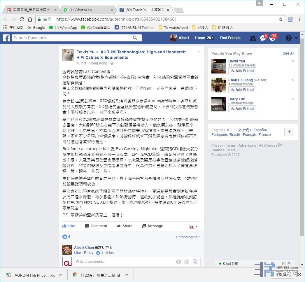 TravisYu to AURUM Technologies: High-end Handcraft HiFi Cables &Equipments https://www.facebook.com/autechhk/posts/654854021384661