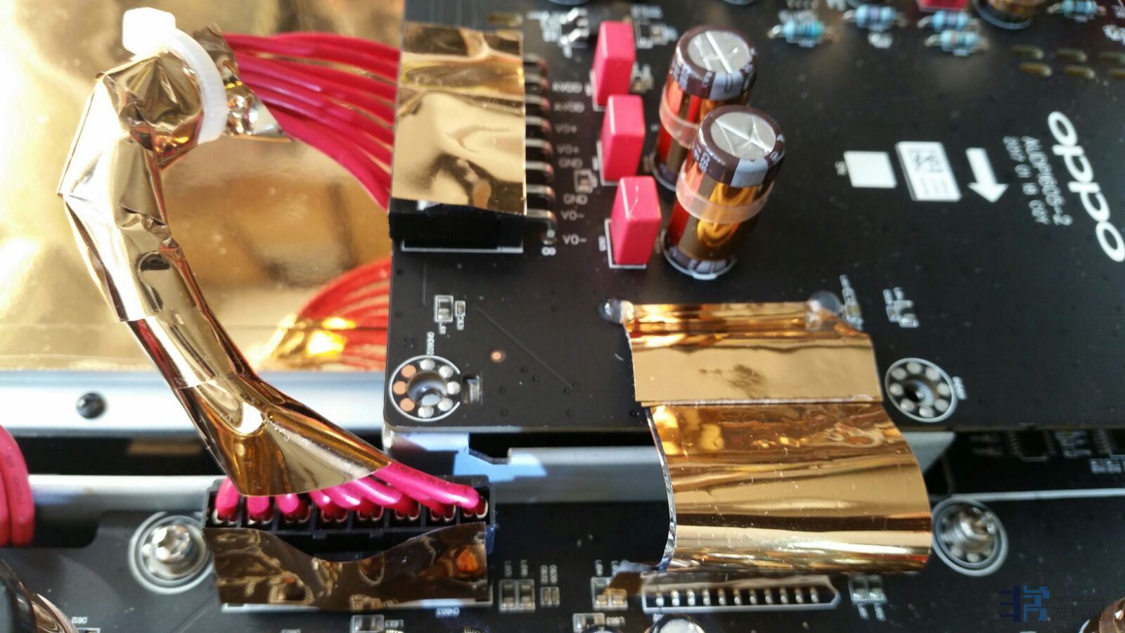 黄金镀膜插頭屏蔽用了两种不同结构及密度的黄金镀膜并成一份,一起使用。