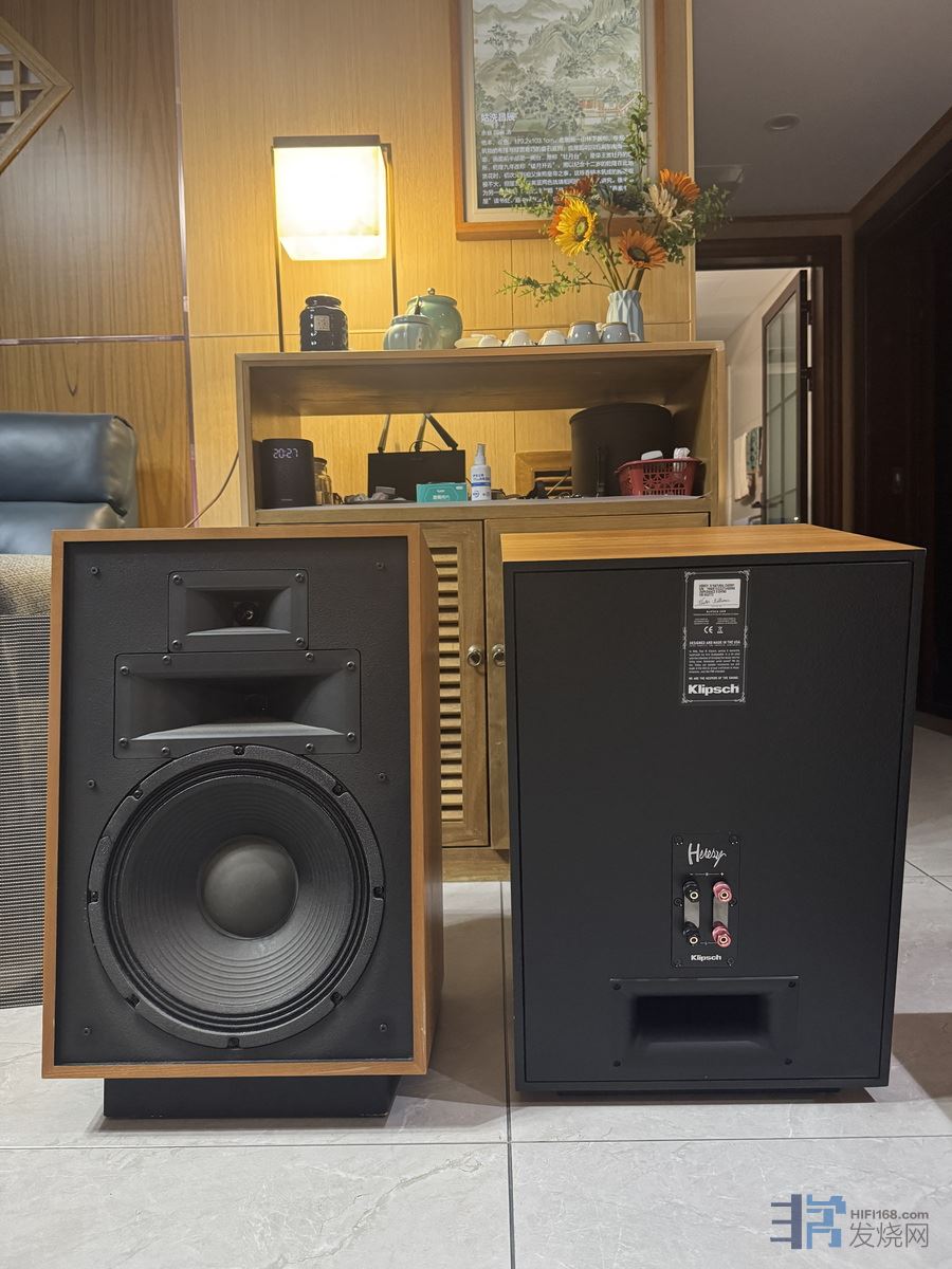 。。。因为本人是HIFI和AV双修玩家,视听室落成前,为了兼顾HIFI和AV双修和节省空间,一直在寻找适合这个小空间的三分频落地箱,最终,Klipsch杰士Heresy凯旋三代落入我的法眼,价格也是适中,直到视听室落成时,一共搞了三只同型号的三代箱子作为AV系统的前三喇叭,顺便说下,杰士的号角喇叭(包括JBL 44系列),在电影玩家的口碑中,一向都是非常值得推崇的玩法。同时,凯旋三代左右两个主箱子同时兼任HIFI主箱,不管是听音乐还是看电影,三代箱子的声音表现,都非常满意,与空间也很搭配,真的是小空间的经典好箱