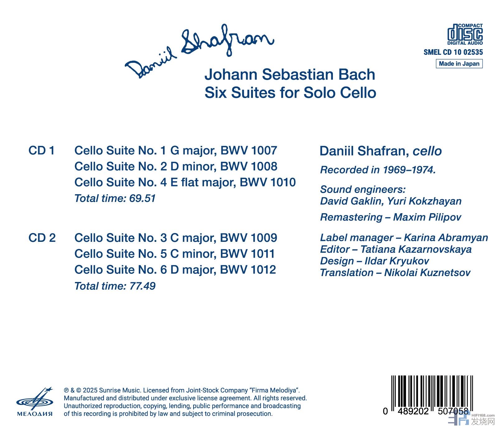 💿 LIVE IN MOSCOW. JANUARY 7, 1967 杜普蕾x BBC樂團莫斯科音樂會 (2CD)編號 :SMELCO1001087; Jacqueline du Pré 杜普蕾(Strad.,Davidov1712)/ Sir John Barbirolli 巴畢羅里, BBC Symphony Orchestra: