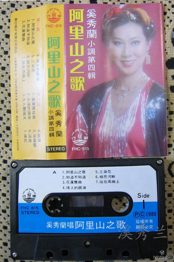 原帖由 溪秀兰 于 2007-12-12 23:39:00 发表最近收的录音带,风行唱片有限公司出品的原版带,磁带盒的背面有风行公司的番号:《奚秀兰第四辑 阿里山之歌》、《奚秀兰第九辑 中国名曲集》