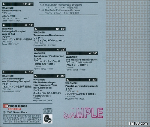 Kna跟非德国乐团合作不算多,本唱片开头两段来自1947年伦敦爱乐的合作听得出仍然是SP,这时已经是SP开始退出录音舞台的时期,声音已经相当的成熟,这就是日本人叫嚷的“清澄感”,可惜源盘状态不太理想,有的地方破裂了。