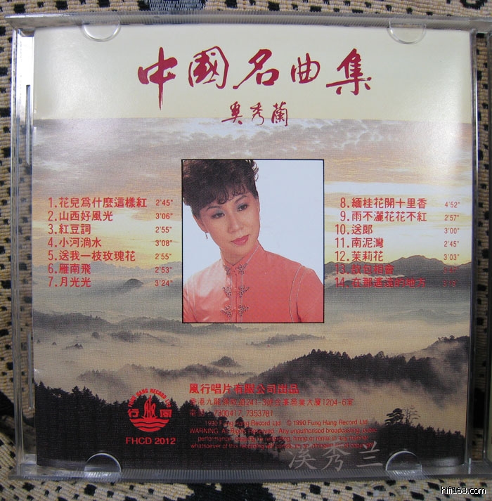 请教奚秀兰唱片的版本问题!!!《奚秀兰 中国名曲集》CD唱片,风行唱片有限公司出品,编号:FHCD 2012