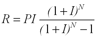 这个是房贷每月还款数额的公式,其中P为贷款总额,I为月利率,N为按月计算的贷款期限。