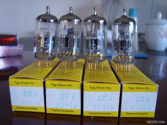 西门子CCa是仅次于德律风根CCa的世界上最好的白金级6DJ8管。采用frame grid设计,最大限度降低了麦克风效应,所有CCa在出厂前均进行了严格的筛选和测试,完全无一般6DJ8管大麦克风效应的诟病,同时配对精度得以极大提高。西门子CCa解析力极佳,高频飘逸,空气感强烈,低频下潜十分深,但收缩迅速,不会产生低频臃肿的感觉,极适合大尺寸扬声器系统使用。