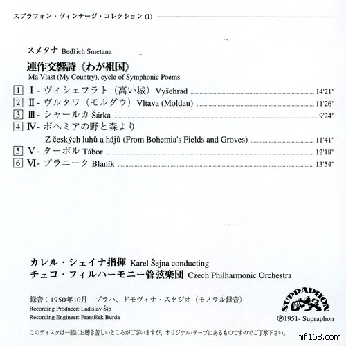 今天真的很提起捷克指挥家Karel Sejna(1896-1982)的名字,捷克封禁的时期尘封了多少杰出的名字丫。他的这版1950年“我的祖国”充满了力量感,带着对祖国的强大自豪感,末一首听起来像是幕布悄然落下,颇为神奇。另外,这张碟的表面是古铜色的半透明漆面,很漂亮。