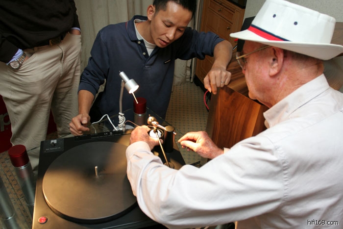 用高尔夫球做唱臂?!对,不是讲笑,学问大了,欧博的刘总在我面前对他赞不绝口,称这个高尔夫球加硅油的唱臂是低成本、好声、容易玩的好设计,而且这个唱臂是自适应调整,就是可以根据不同唱片、或者同一唱片不同片断来自动调整出最适合的状态。