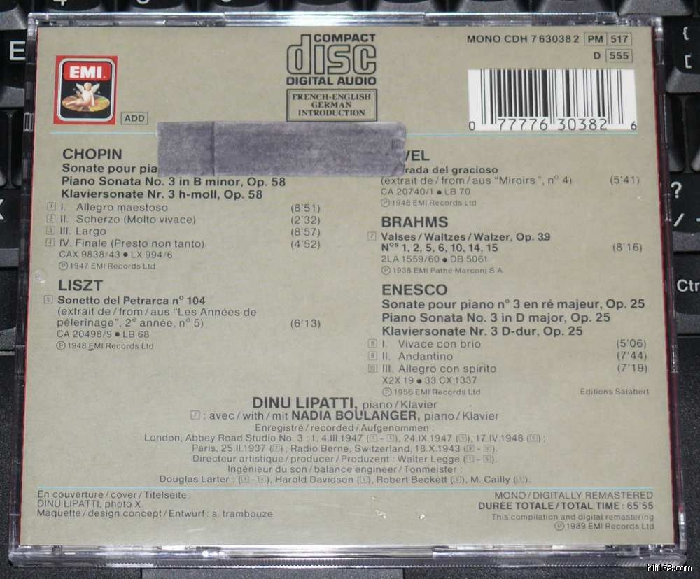仔细看了LIPATTI的那张和EMI5cd套装里一样