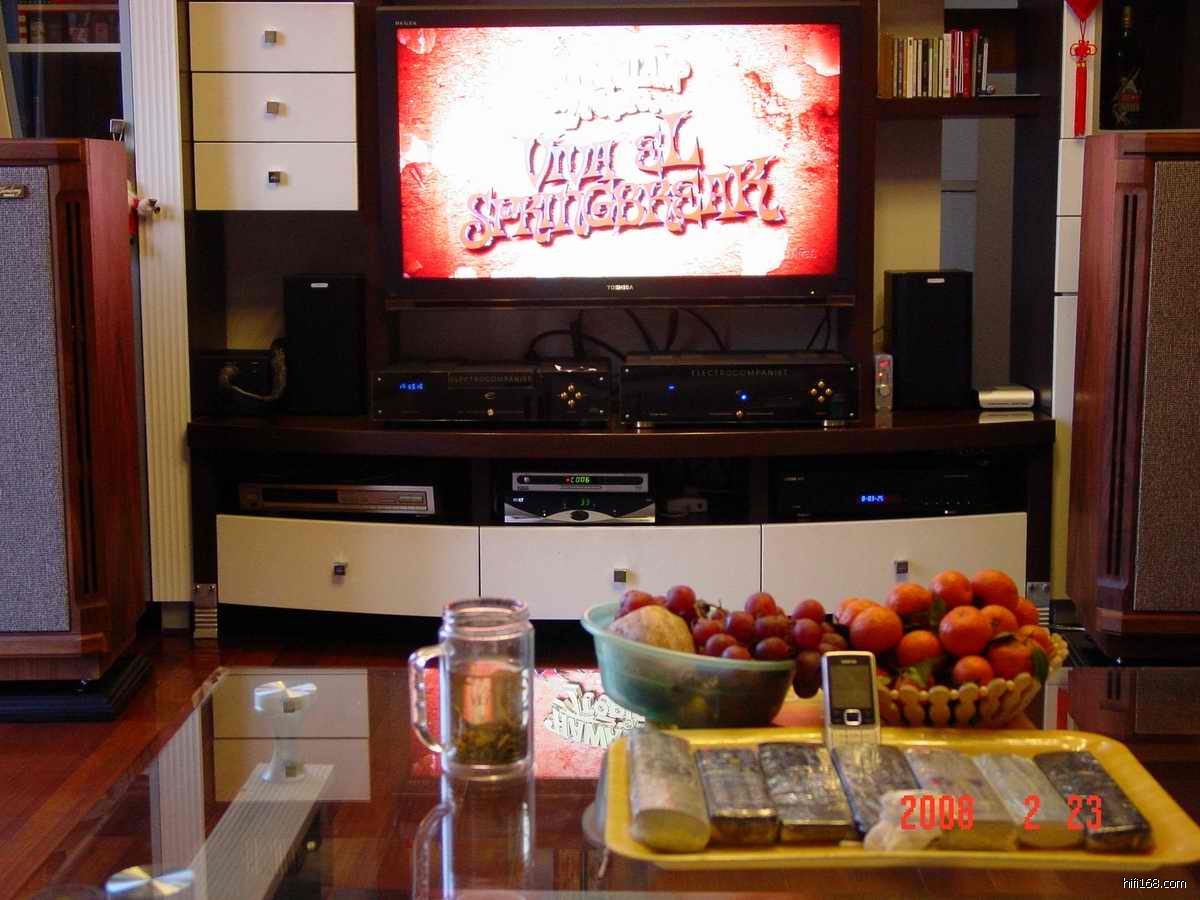 原来喜欢玩音响,近来想上高清投影无奈空间太小。重新装修听音室家人通不过,权宜之计上了这套系统。纯音响兼顾卫星电视、数字电视、高清播放、影院系统包括收音。整整八个遥控十一个电源插口。玩起来挺有意思。高清是爱视达A800+ 元谷硬盘500G,初步使用效果不错绝大部分制式的高清影片都能流畅播放。绝对对得起他的价格。电视是东芝42C3000C超高清电视1080P。功放和cd是挪威音乐之旅、主音箱是英国天朗图贝利由于空间限制没有办法上av 只好上全屏解码器以解决纯功放无法播放dta/ac3音频的问题。使用中不知道为什么dts无法转换成2.1音频输出权宜之计用一对有源音箱代替中置和重低音炮,卫星电视是0.6米和1.5米天线各一套收看146和105.5.效果还可以。
