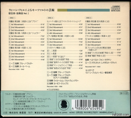 全部录音基本都是MONO的,除了一首Krips指挥的“后宫诱逃”序曲。虽然不知道新星堂的工程师是谁,不过复刻工作做得非常好,这不是那些吹嘘的日本小厂可以比的,就算是老东芝也难比肩(我X,东芝把东西全给它干不就结了吗),聆听时由衷地赞赏。