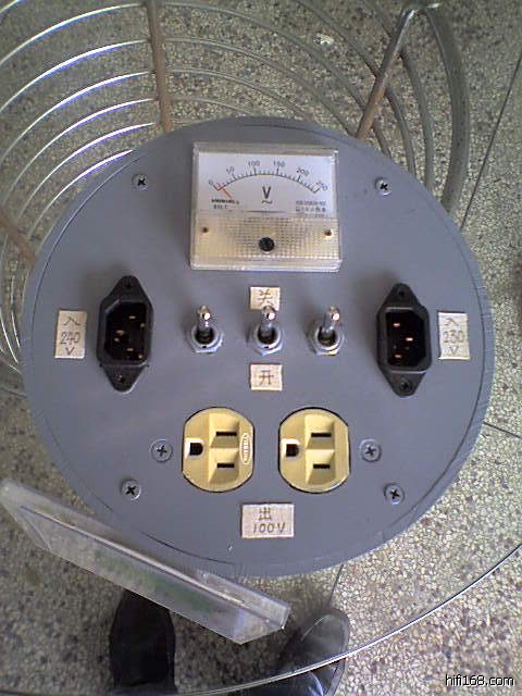 东洋好很多。,外壳是用pvc塑料管做的,输入的插座是2个古河紫铜插座,输出插座是荷宝插座,3个开关都是进口货,输入电压240V,220V,210V,200V。输出100V,115V。带电压表,