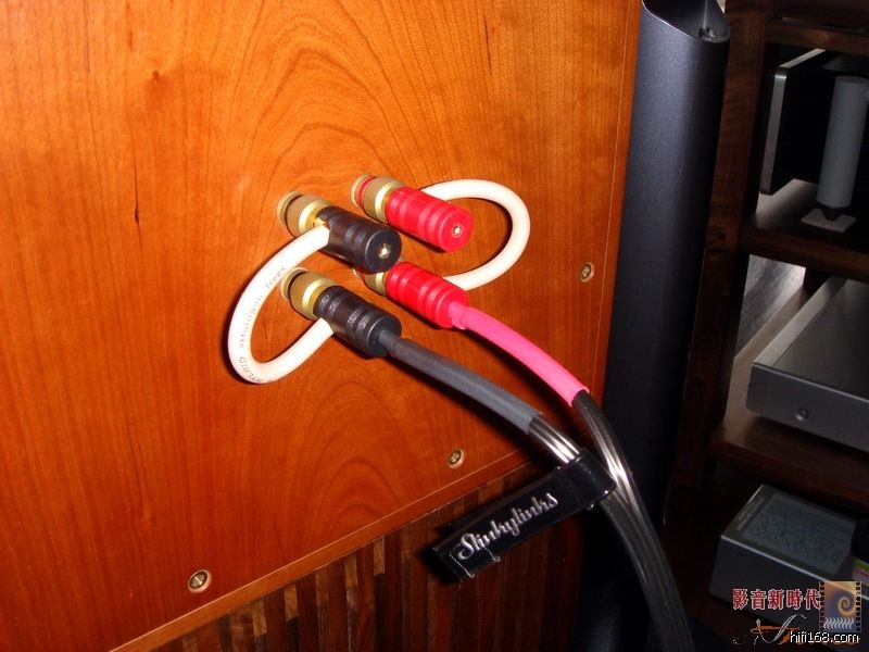 前文说过,因为偶的丝带喇叭线上的WBT插头只能一只脚伸进超五的接线柱,这样接看上去不爽,所以一直用混混兄寄来试听的Slinkylinks喇叭线。会不会因为喇叭线的缘故呢?带着这个疑问偶换下了Slinkylinks,换上了丝带。再开声,呵呵,超五总算发出了让人满意的声音。