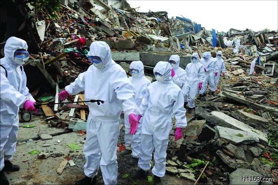昨天下午6时许,防化部队开始撤离北川县城。(2008/5/23 23:09:28 上传)