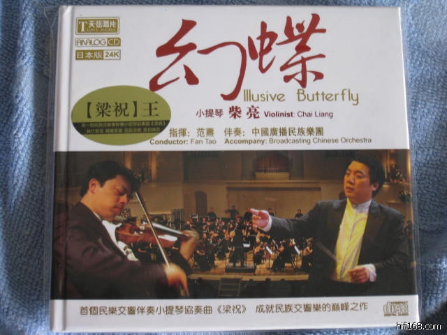 《梁祝》,是中国音乐史上的传奇!!大家应该没有意见吧?听音乐听了这么之年了,我还没有一张《梁祝》,近期听说中国自己的乐团自己的小提琴手出了一张,就买来试试,哈,还是24K金碟呢!!我刚听这张碟子的时候,觉得真的很不错,但在这里我不推荐各位大侠去买。我觉得这张碟在高潮段的时候有点凌乱(不知道是我的音响有问题还是录音的问题),还有一点,一定与器材没关的,就是柴亮在有些位里,会拉走音,有时还会随随便便就拉过去,没有肯定的演绎。不过总的来说,还是一张难得的《梁祝》!!各位有兴趣可以试 试,以上纯属个人意见,不代表坛子立场!