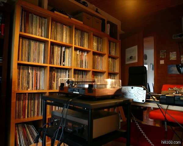 虽然这样对LP的避震不好, 但这样方便,他每天都听4-5个小时,方便换唱片是个好事.