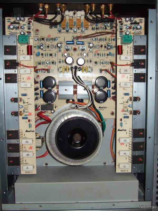 如果说在结构设计上是集思广益,博取众长的结果,那么在电路设计上则主要归功于音响设计师关明芬先生,关先生在80AH里面倾注了不少心血,以其近年成功开发出几款优秀放大器的心得,及二三十年的发烧经验,在音色调校方面下了很大的工夫,几经反复推敲,做了大量细致慎密的试验,历时近一年,最后各方面都相当满意了才最后定版。