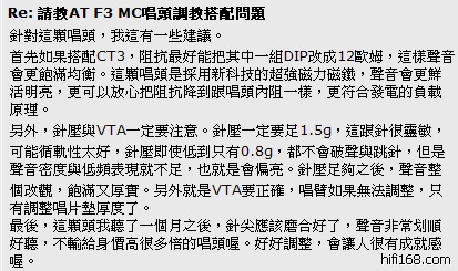 原帖由 松香味 于 2009-1-15 13:28:00 发表mylp兄既然用过AT-F3IIMC唱头,请多给建议哦。