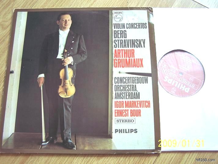 <P>183,贝尔格、斯特拉文斯基小提琴协奏曲,格罗米欧小提琴,PHILIPS荷兰红银双圈,NM,220
