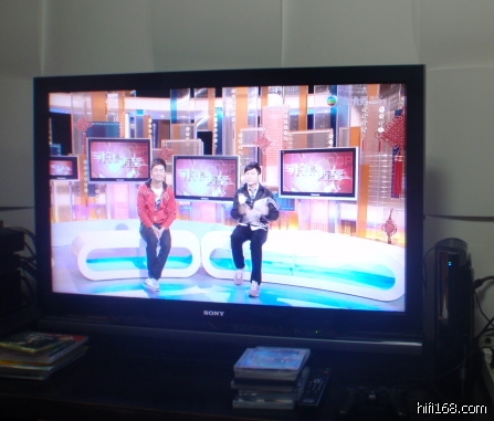 在深圳对比V4800,SHARP GX50A的图像时,同样1080i的片源发生器:SHARP的整体要黯淡,质感好,好像照片的蒙面冲洗。SONY的则清亮一些,肤色更自然。第二则是侧面观看时,SONY的相对清晰些。