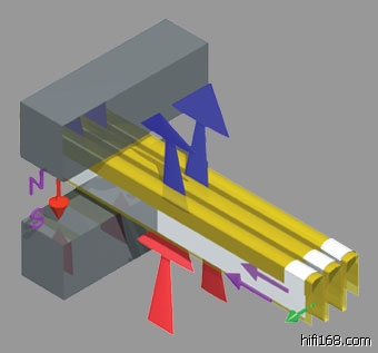 2. 输入增益切换:MC15没有内建音量控制,所以不适合讯源直入,它的三段增益切换主要是为了配合输出电平不同的讯源而设置。如此设计的道理与前一点相同,可以排除可变电阻对音乐讯号的伤害。而且,对于新一代多媒体喇叭使用者而言,他们的讯源(计算机、iPod等等)本身就可以控制音量了,所以MC15本身并不需要这项功能。