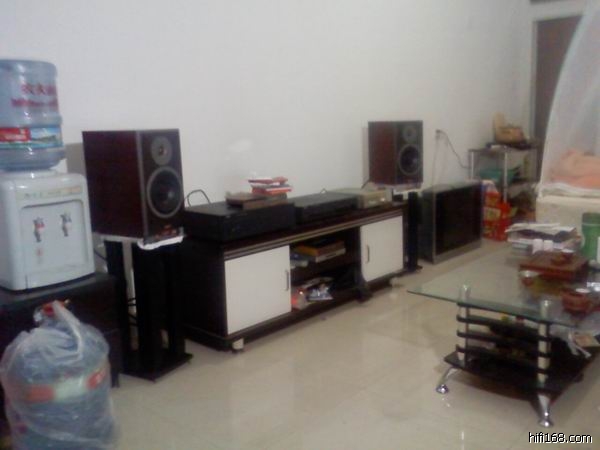 我的宿舍是3*7M的,共21平方。图中可以看到,音箱离沙发1.8M,两个音箱之间是1.5M。环境很差,手机拍的,大家将就看哦。