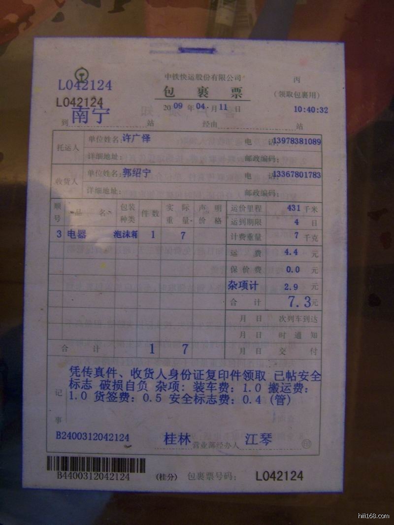 呵呵,郭兄很客气,我运费已付了。本来想走快巴,结果汽车站电脑临时故障,只好去中铁,就要麻烦您了。