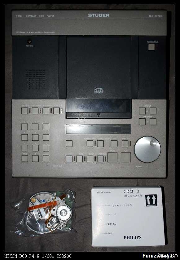最近整好有一台A730需要更换光头,为此整好打开一探究竟;这台A730使用了专业版的鋳吕飞利浦CDM3光头 ,这种光头相比专业版的CDM1和CDM4体积较小,但可靠性能很高、原本是为汽车音响设计的,现用在A730身上更加强了其可靠性。本次为了购买这只光头还颇费了一些周折,是托朋友从日本花了2千多买回来的。