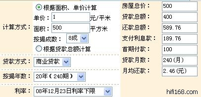 已经跟楼主达成协议,付款方式参考搜房网的计算器的结果。