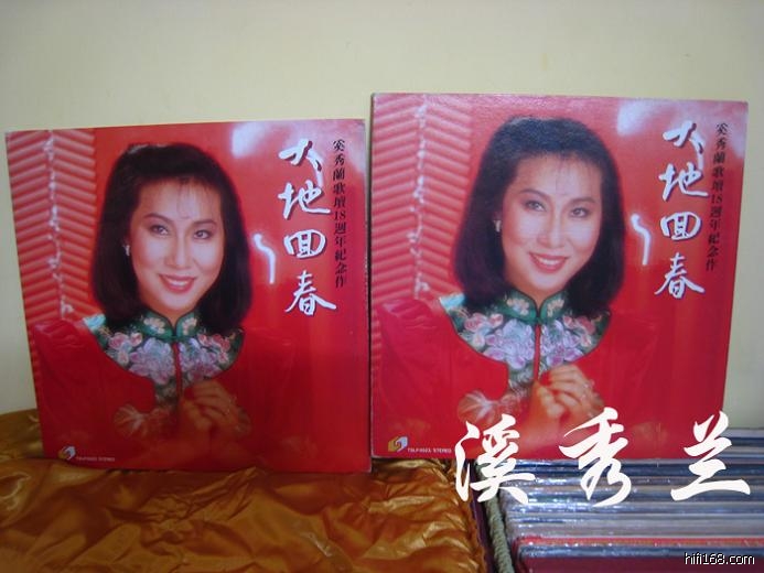 两张《大地回春》LP黑胶唱片,一张廖兄的,一张我的,封套都很新,碟面亦看不出区别,但音质表现不同,主要在奚氏嗓音的光泽度、圆润度、细节和层次感方面差异较大,《一枝秧歌一趟秧》、《万水千山总是情》两首歌都有和声伴唱,伴唱群的清晰度、象真度有区别。