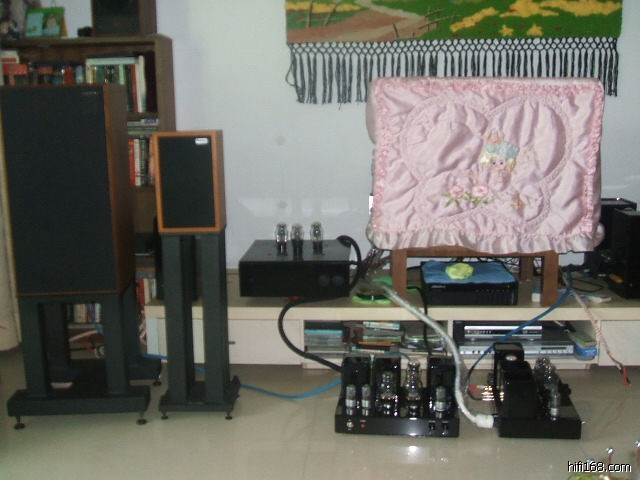 经过两晚连续的通宵测试调整,终于实现靓声飞跃!现在满功率(20W)推JBL4425,没有感觉明显的听觉失真,在没有调整前当开到12点已经失真!看来这两晚的功夫没有白费,令20W的300B推挽达到晶体管80W甲类的输出控制力了!