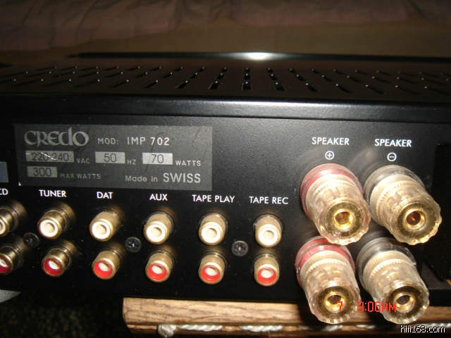 最便宜的瑞士功放 君度702 3300元 9成新瑞士 CREDO IMP702合并功放,有意请电或短 信:13977222833联系,谢谢! 声音甜美,音乐味浓郁。低价也能拥有瑞士机。 功率 欧-70瓦 4欧-140瓦; 频宽:5Hz-20KHz,+0dB/-3dB; 失真:小于或等于0.1% 耗电:最大160VA; 电压:220-240V,2A; 体积:440x85x305mm; 净重:9公斤