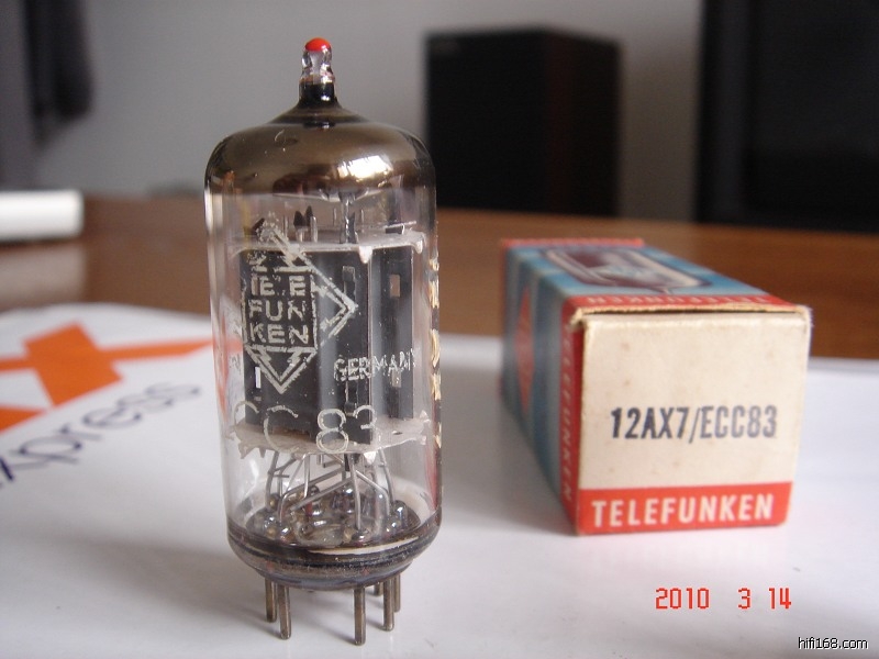1:德律丰根ECC83/12AX7 滑屏一支,成色见图,菱底.T云母.测试完好.价格400.