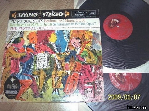 [font=仿宋_GB2312][size=14pt]T104,罕见唱片,节日四重奏团(由哥德堡、普里姆罗斯等组成)演奏的勃拉姆斯、贝多芬、舒曼三首钢琴四重奏,RCA头版加拿大压片,2LP,NM-,280[/size][/font]