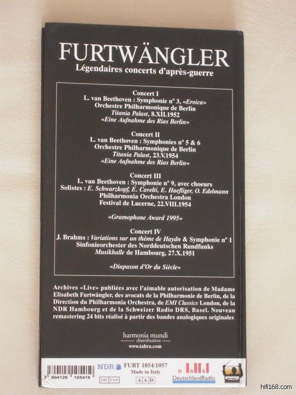 [size=2][color=#4169e1][size=4][color=#000000]1、富特文格勒战后传奇录音集,Tahra FURT-1054/1057,4CD,320元。