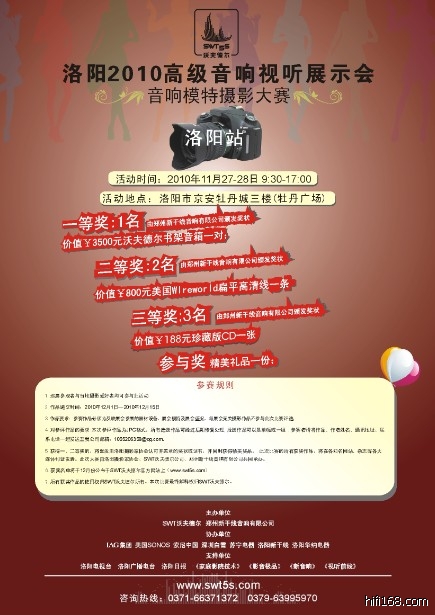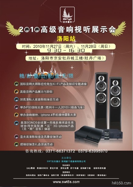 我是洛阳的严重支持!今天下午在王老板处拿到了入场券。呵呵...王老板为了洛阳的这次音响视听很早就做了努力和准备,联系厂家和著名人士到会讲座,为洛阳的音响视听又提供了新的平台。赞啊!