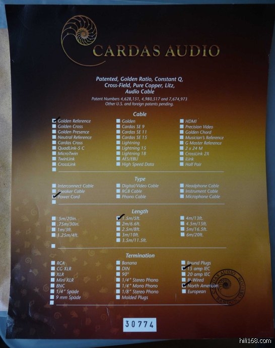许老板与力高陈先生的电话中优质服务(解答我的问题),让我享受到购买行货的好处。卡达斯电源线自古以来有三个版本,最常见的是老板,在音响发烧站上,他是常客,大家可以看到其头尾差的包皮部分,采用了浅灰色的隔绝层。此版本的声音,依照网上描述,具有黄昏般的温暖舒适的感受,速度不快,高频保守,低频肥厚,具有相当独特的韵味。其后,推出了改进版金参考电源线,其特点是,浅灰色的包皮部分变成了黑色,上面有了金粉