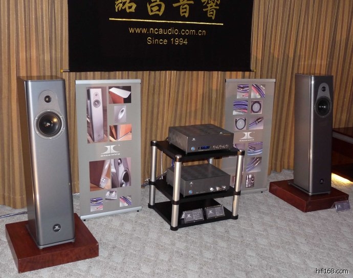 两套前后级,KONDO“音乐”(ONGAKU211单声道后级为每声道27瓦,天琴单声道后级为1000瓦,分别驱动同样的喇叭LUMEN WHITE 品牌欧洲标准定价28000欧元的高级陶瓷单元喇叭。这样就很容易比较小功率纯甲类胆机与大功率AB类晶体管机的声音表现。LUMENWHITE 品牌以瑞士为研发总部。此次展出的Lumen White Artisan內部采用三路五单元的设计,采用一寸Scan Speak环状辐射高音单元、Accuton陶瓷单元(5.5寸一只,73只),频率响应:30赫兹---47千赫兹(-3DB),灵敏度90DB,阻抗:6欧姆。每只重65公斤。在官方网页中,我找到以下一句话:lumen white products are designed by lumenwhite research group in switzerland and the uk. manufactured in the eu. lumen white产品在瑞士与英国lumenwhite research集团设计,欧洲制造)