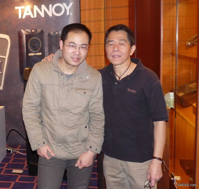 在天朗TANNOY展厅,我看到一位熟悉的身影正在测试器材,这不正是音响界赫赫有名的香港音响宗师陈经纶大师么,我很喜欢看他的音响评论。见到偶像,自然礼貌的提出合影的请求,陈经纶大师非常和蔼,立刻答应了我的请求,我很高兴实现了与大师合影的愿望