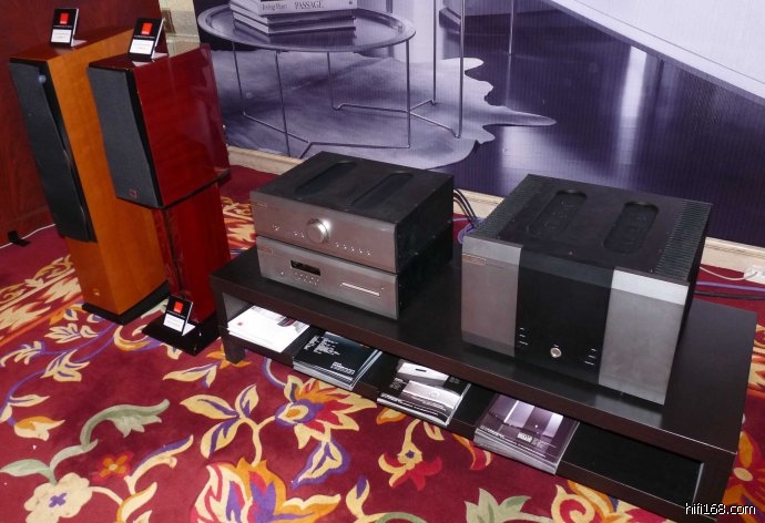 B&W展出了其最新锐旗舰音箱800DIAMOND,以替代原来的旗舰800D。外观上每个单元都增加了音色的一圈金属边,更加华贵,用料也更加足。用全套加拿大CLASSE高级音源功放进行驱动。此外还增加了LINNLP12黑胶唱盘进行演示。