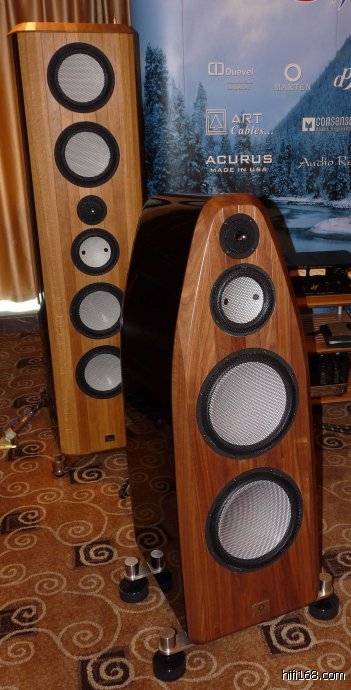 现场播放爵士乐,我感受到与上次展会那清晰干净的声音不同的温暖的有低频铺垫的音色,与B&W同样采用钻石高音,MARTEN给我的感觉比B&W高级,表现在高频延伸不会给人刻意强调的直接感,人声自然释放,毫无压力,使得活生的气息感栩栩如生,得益于大尺寸低音单元,低频量感多,但是没有控制住,或者说,受到驻波干扰,产生了比较散而模糊的低频感觉 ,受制于低频影响,高频虽然柔和,无刺激,很有人情味,但是给人延伸不够劲的感觉,表现不如上次展会。 再次证明了音箱巨肥越大越贵就越好伺候,相反,旗舰级的喇叭对于功放,空间等各方面也有着最高的要求。搞不好,听感很可能不如两分频书架箱。