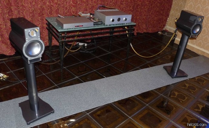 可惜的是,虽然喇叭已经是顶尖,前端还是不够给力,不足以让其发挥真正实力,DP510在金嗓子播放器中级别不高,E450合并机的级别也不够高,有加上P7100AB类功放与A45纯甲类功放的风格与表达方式融和得并不完美,使得这套系统有缺点,但会有很大进步的余地,比如高频有时过于锐利了些,导致刺激的齿音的出现,中高频与低频的衔接并不完美,高频延伸虽然极为出色,但是高频的形体过于明亮直接,反而与宽松的低频缺乏饱满中频的完美过渡。这对旗舰音箱,绝非好伺候的主,或者说,金嗓子如能出动DP700音源,甚至分体音源,来好好伺候给这对喇叭充足的信息量与高级的细腻度与质感的话,我认为,完全可以让这对喇叭发出真正体现150万价值的声音,不过,即便在现在如此前端下,其声音也胜过了现场表现不佳的B&W800DIAMONG与表现更差的丹拿至尊系统,这昂贵的价格的音箱,多少没有反不如便宜的价格的音箱,虽然不如FM加卡玛那么完美,多少,还算遵循了一分价钱一份货的原则。瑞士FM功放驱动这对圆球会怎么样,我不禁遐想连篇。