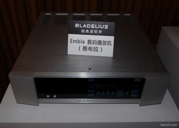 美辰公司展出了瑞典BLADELIUS的旗舰BLADELIUS EMBLA数码播放器,这款定价台币20多万(人民币五万左右)的新型播放器具有美丽的彩色显示屏,可以播放CD,采用的是TEAC的高品质转盘,即使单独作转盘也不差,也可以利用自带32GB闪存将CD转换为PCMFLAC音乐格式进行播放。自带USB输入接口,还带有网络接口。更可以作为解码以及音量控制精确到0.5DB的前级使用,其解码支持32BIT/196KHZ的规格。只需配一台纯后级就能享受音乐。