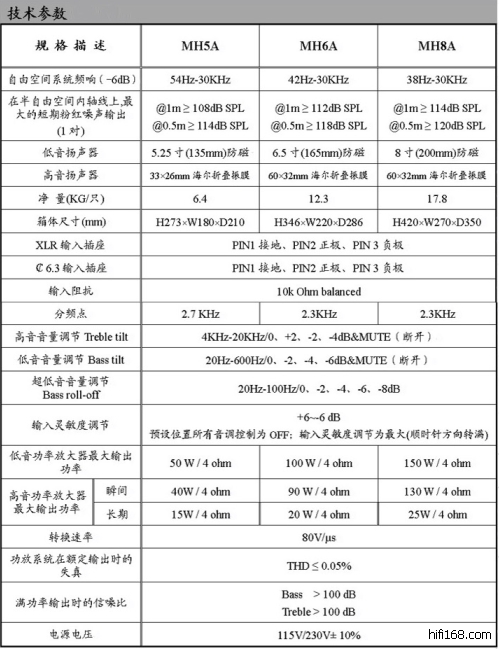 QMS声荟MH5A/MH6A/MH8A有源监听音箱