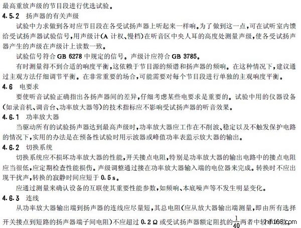 原帖由 松香味 于 2011-4-19 3:31:00 发表中华人民共和国国家标准:GB/T 16463-1996《广播节目声音质量主观评价方法和技术指标要求》(注:也适用于其他节目的声音质量进行主观评价时参考),文件共有十页。由于是PDF格式文件,不能上传到这里,请谅解。标准化的试听方法是一种科学的包括统计学原理在内的试听方法,他可以尽可能地减小试听结果的“离散性”并获得真实客观的试听评价。